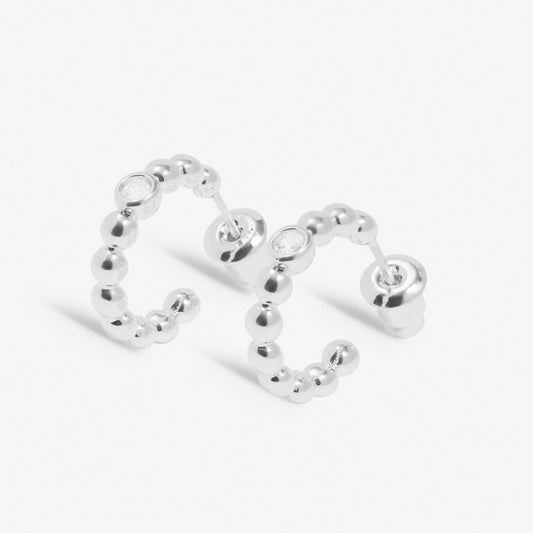 Style Stories Beaded Cubic Zirconia Hoop Earrings In Silver Plating