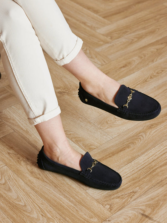 The Hemsby Women's Driving Shoe - Navy Suede