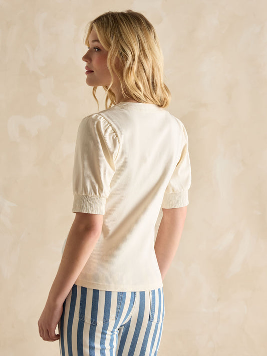 Tabitha Cream Ribbed V-Neck Top With Puff Sleeves