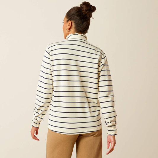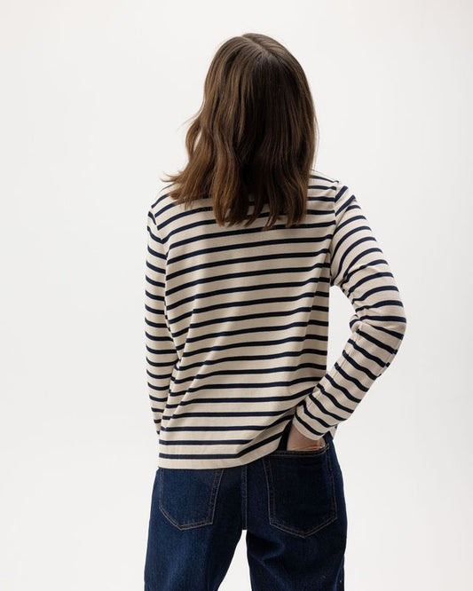 Amilla Tan & White Stripe Longline Relaxed Fit Shirt