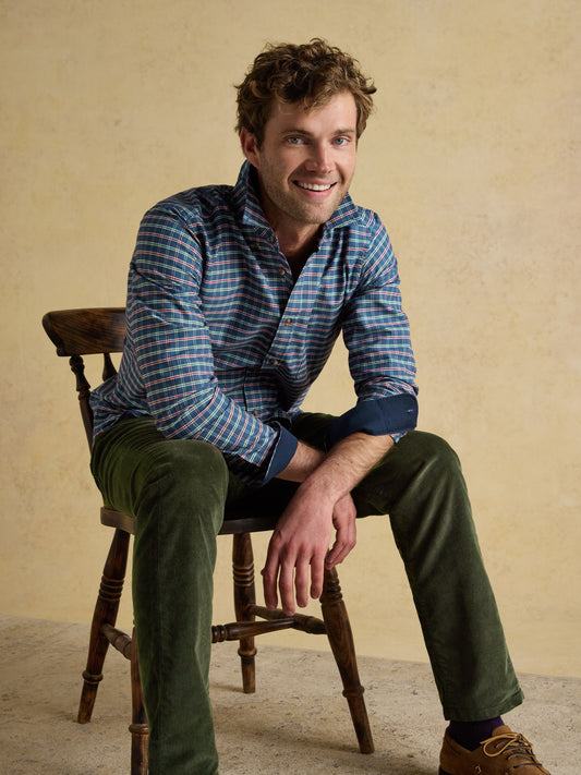 Holkham Classic Shirt Dark Pigeon Blue/Mauve Red