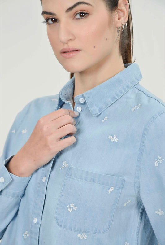 Robyn Denim Embroidery Blouse