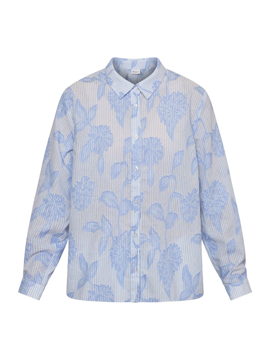 Blouse Ballonsleeve Stripe & Flower Blue
