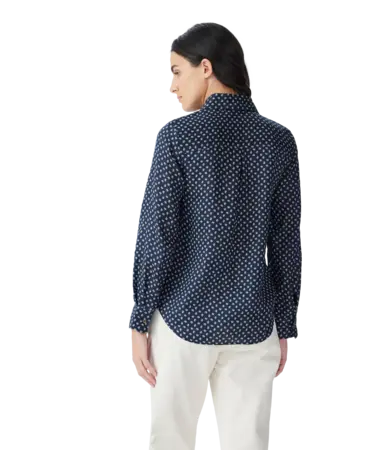 Olney Print Linen Shirt Navy