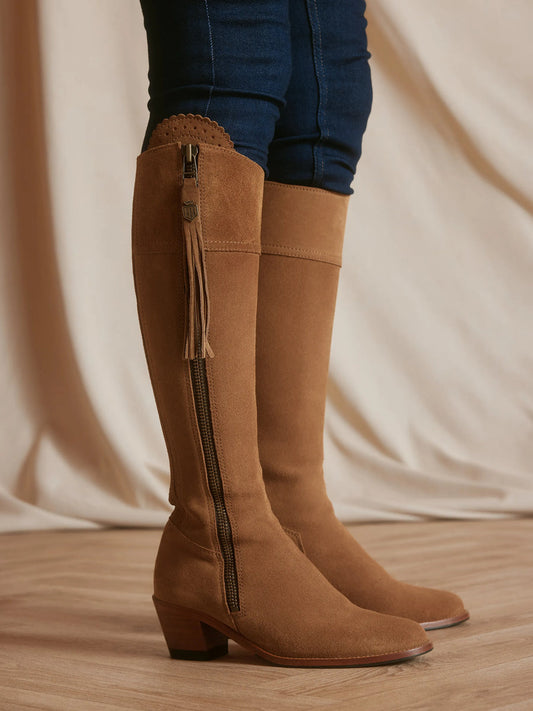 Regina Tan Heeled Knee-High Boots - Sporting Fit