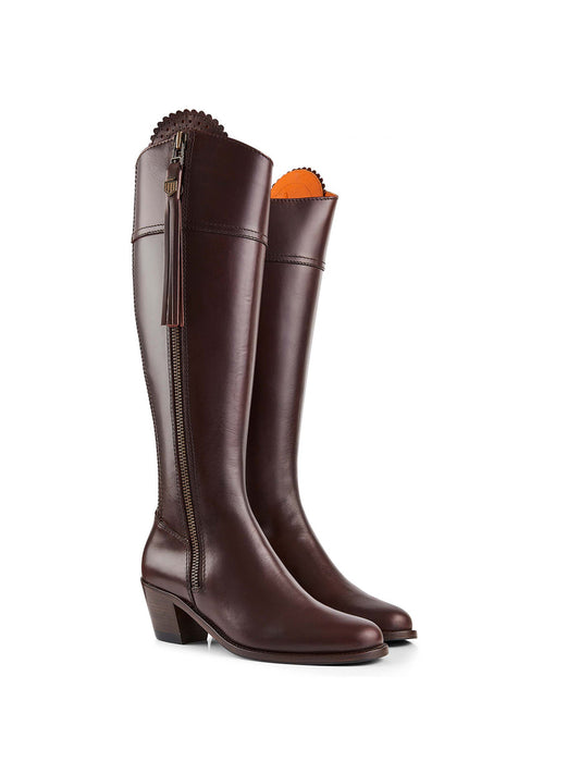 Regina Mahogany Leather Heeled Knee-High Boots - Sporting Fit
