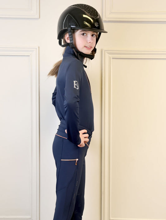 Mini Summer Navy Crew Neck Top with Navy Rhinestones