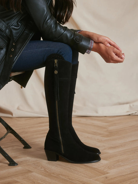 Regina Black Heeled Knee-High Boots - Regular Fit