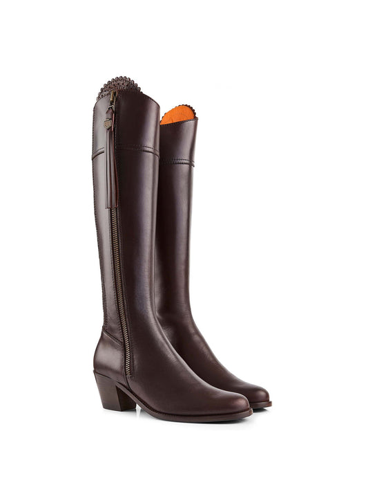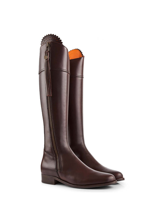 Regina Mahogany Leather Heeled Knee-High Boots - Sporting Fit