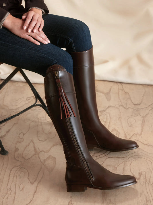 Regina Mahogany Leather Flat Knee-High Boots - Sporting Fit