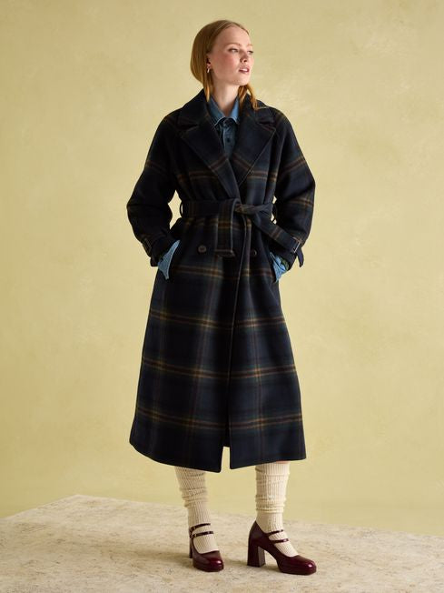 Its longline design provides ample coverage from the chill, while the raglan sleeves create a slightly relaxed feel allowing room for layers beneath. Classic details that are both practical and stylish include a double-breasted fastening with faux horn buttons, a lapel collar and a belt to create a flattering cinched effect at the waist.