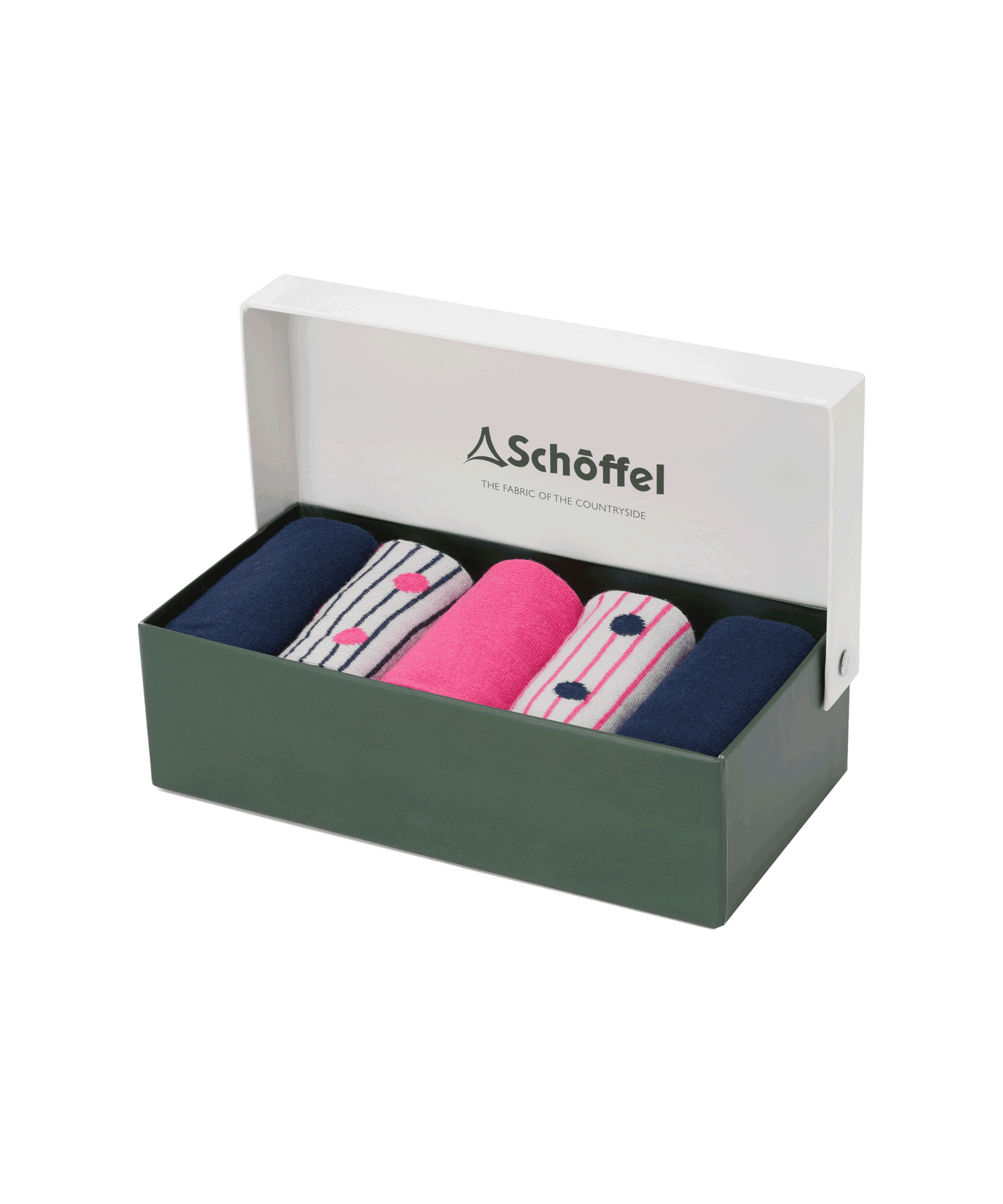 Five pairs of naturally anti-bacterial and soft-on-the-feet bamboo socks, presented in a Schöffel gift box and available in a variety of colours and patterns. An ideal present.