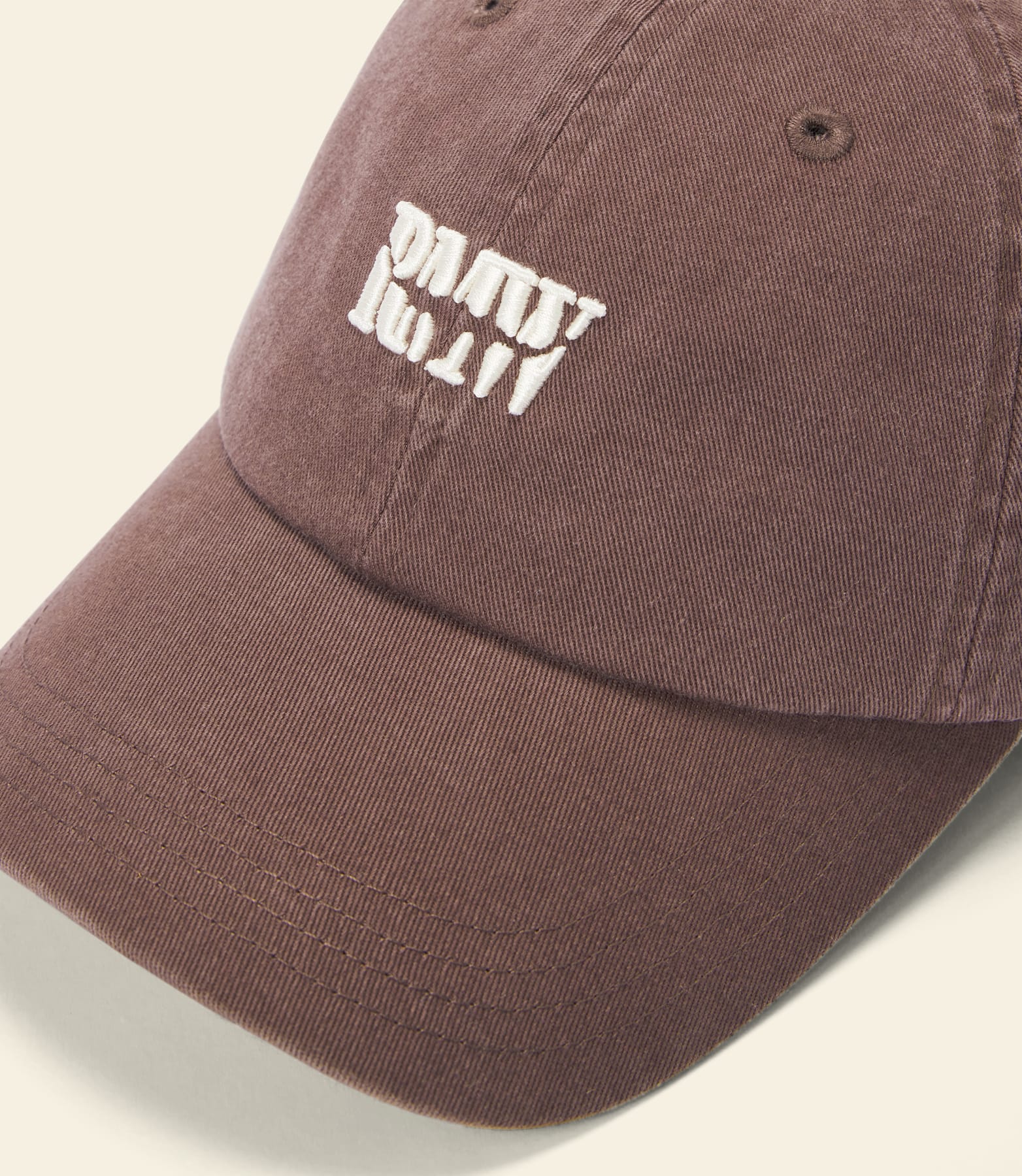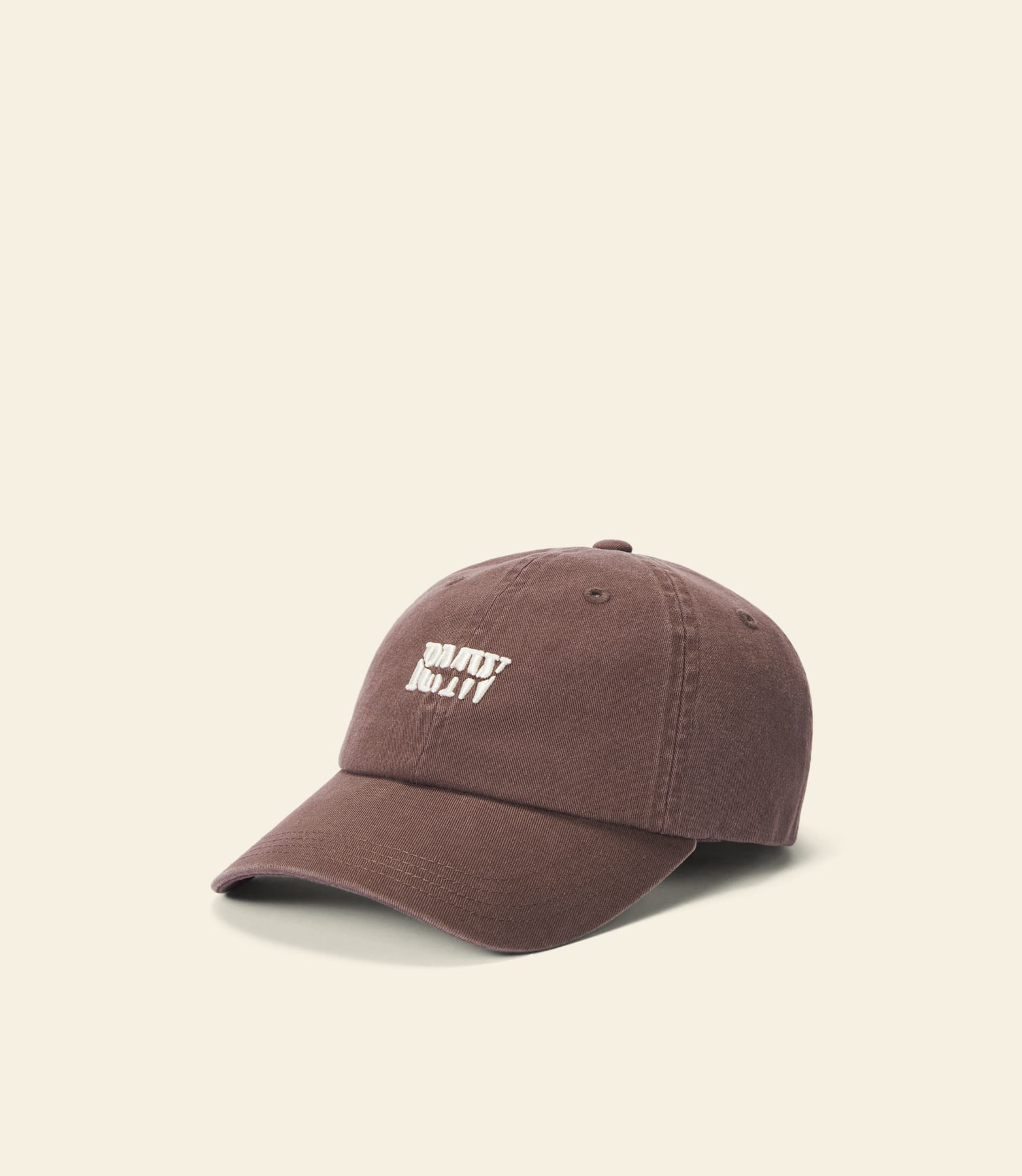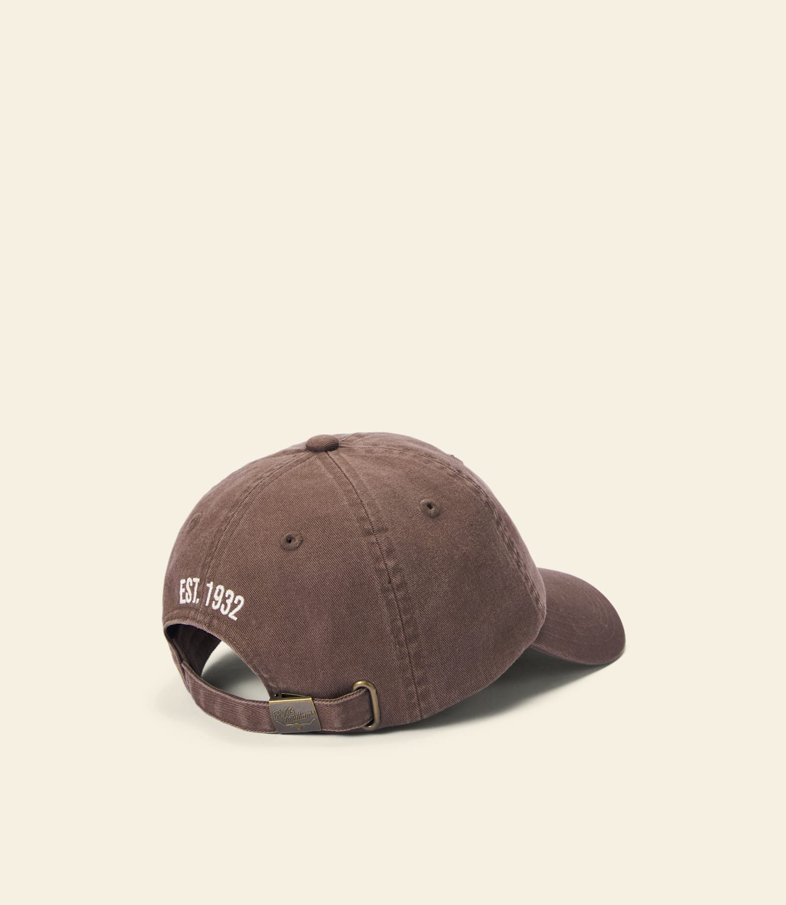 Crafted from 100% organic cotton twill, this cap features an embroidered archive-inspired logo and an adjustable strap with a brass branded logo metal clasp.
