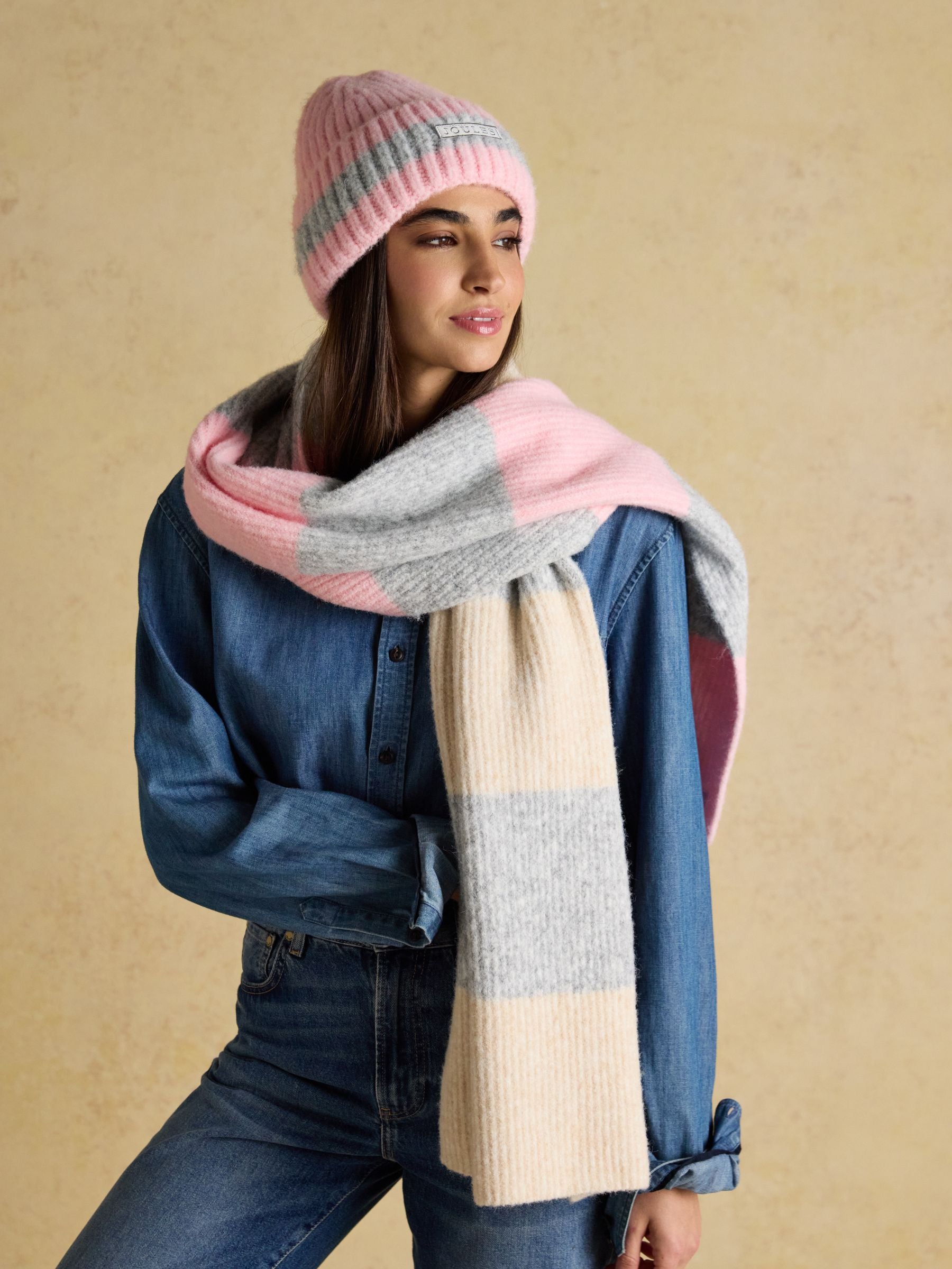 Popley Pink Grey Stripe Beanie