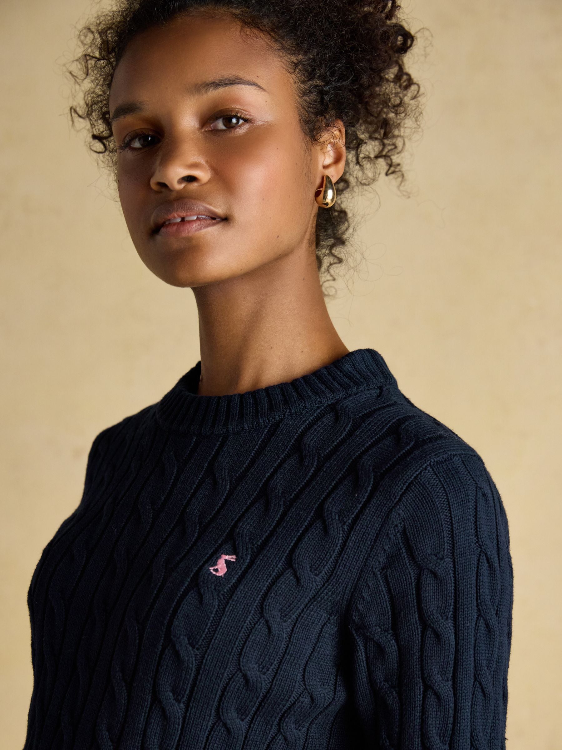 Our refined cable knit jumper will elevate your wardrobe with its classic aesthetic. Crafted to a regular fit from 100% cotton, it features ribbed trims and is tastefully finished with our iconic embroidered hare at the chest. It's the perfect transitional piece to see you through the seasons. Try styling this crew neck with a shirt or a T-Shirt underneath, or wear it alone for a preppy finish