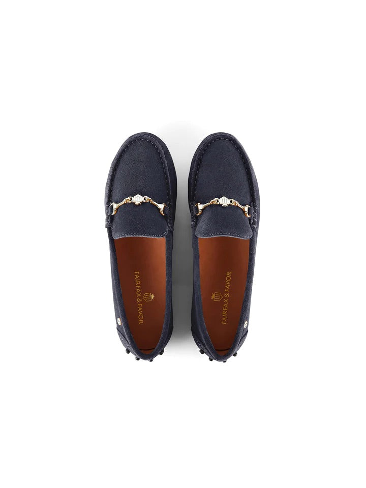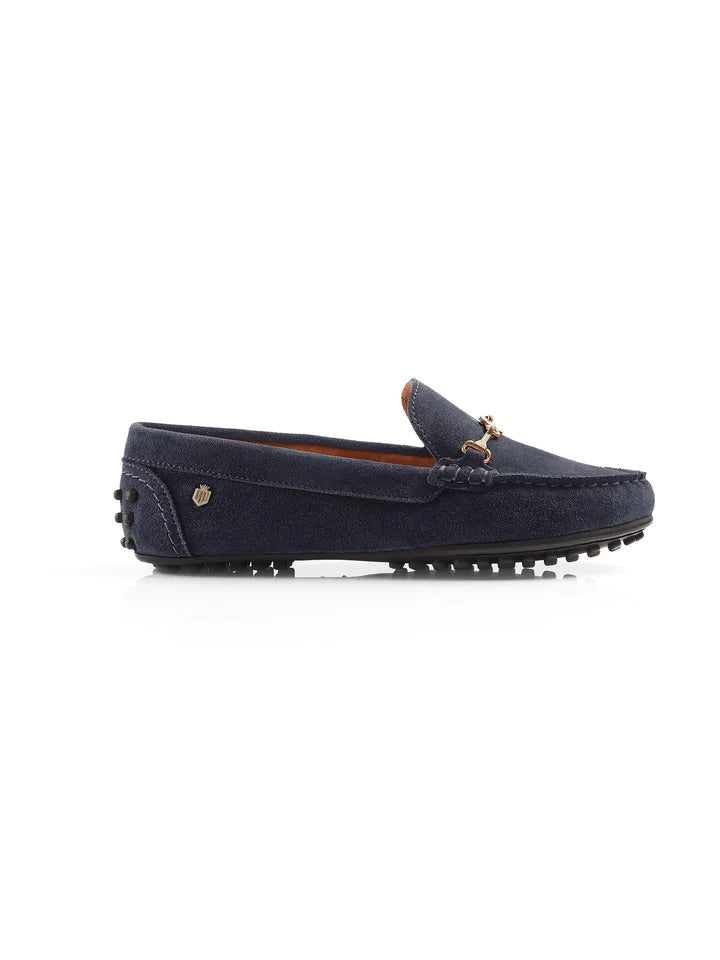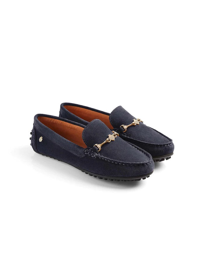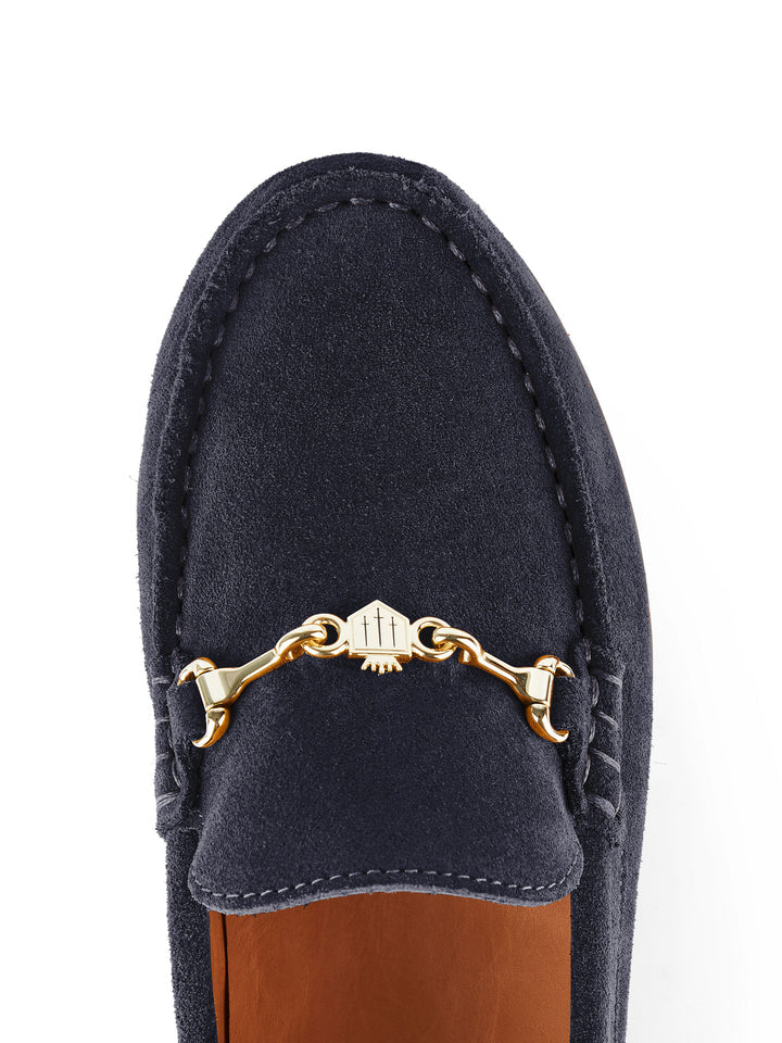 An addition to the Fairfax & Favor driving shoe family, the Trinity Driver is a stylish take on a much-loved classic. Crafted from soft luxurious suede and lined with a leather comfort padded insole. Finished off by the branded gold bit hardware and the signature gold shield. A real upgrade to your casual footwear collection, the Trinity can be paired with jeans, an oversized shirt and the Gatcombe Tote for a more elevated weekend look.