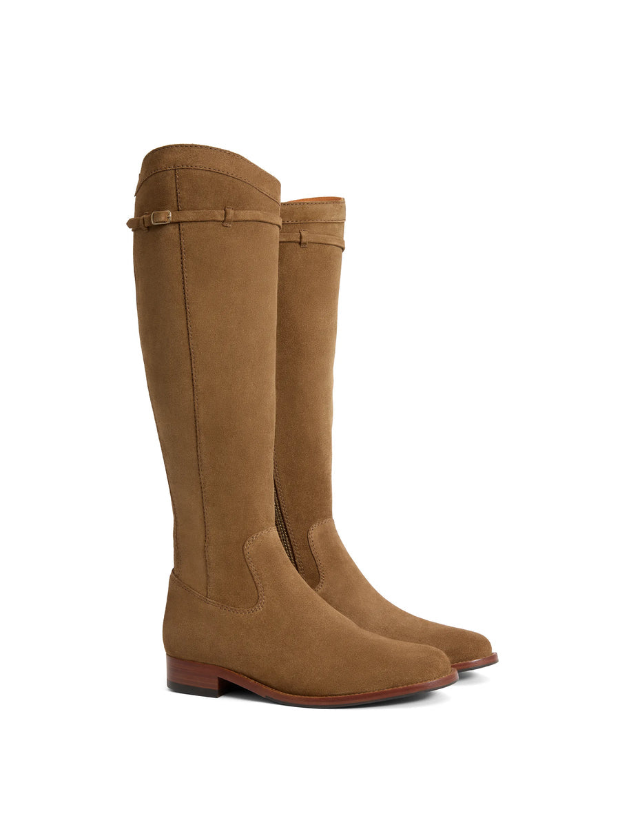 Clean, minimal and refined, the Kimberley Flat Tall Boot draws inspiration from the silhouette of our iconic Regina and offers the same exceptional fit. The slender strap at the top, complete with delicate buckle trim, keeps detail to a minimum, delivering a boot that’s understated and utterly timeless.