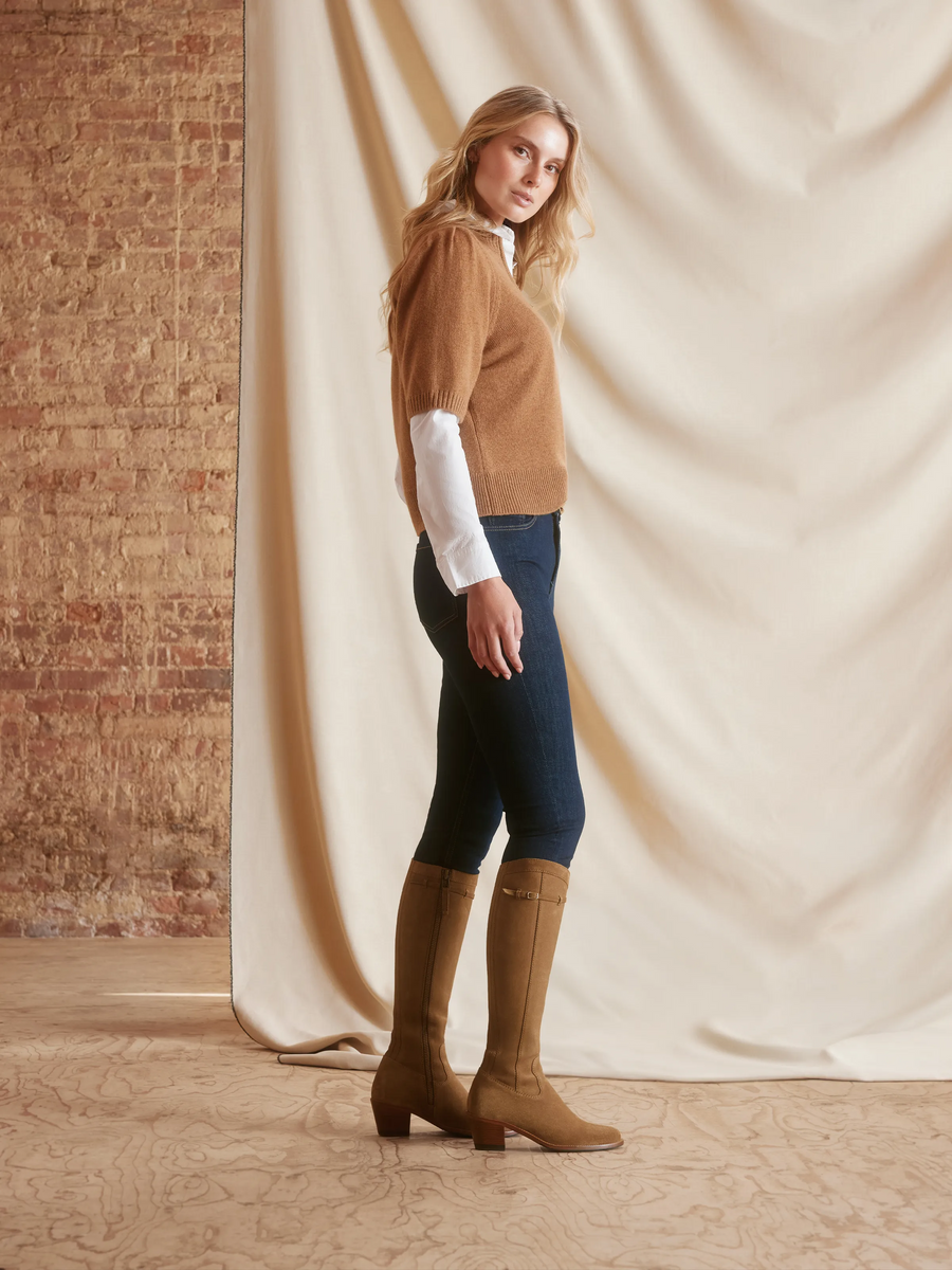 Clean, minimal and refined, the Kimberley Heeled Tall Boot draws inspiration from the silhouette of our iconic Regina and offers the same exceptional fit. The slender strap at the top, complete with delicate buckle trim, keeps detail to a minimum, delivering a boot that’s understated and utterly timeless.