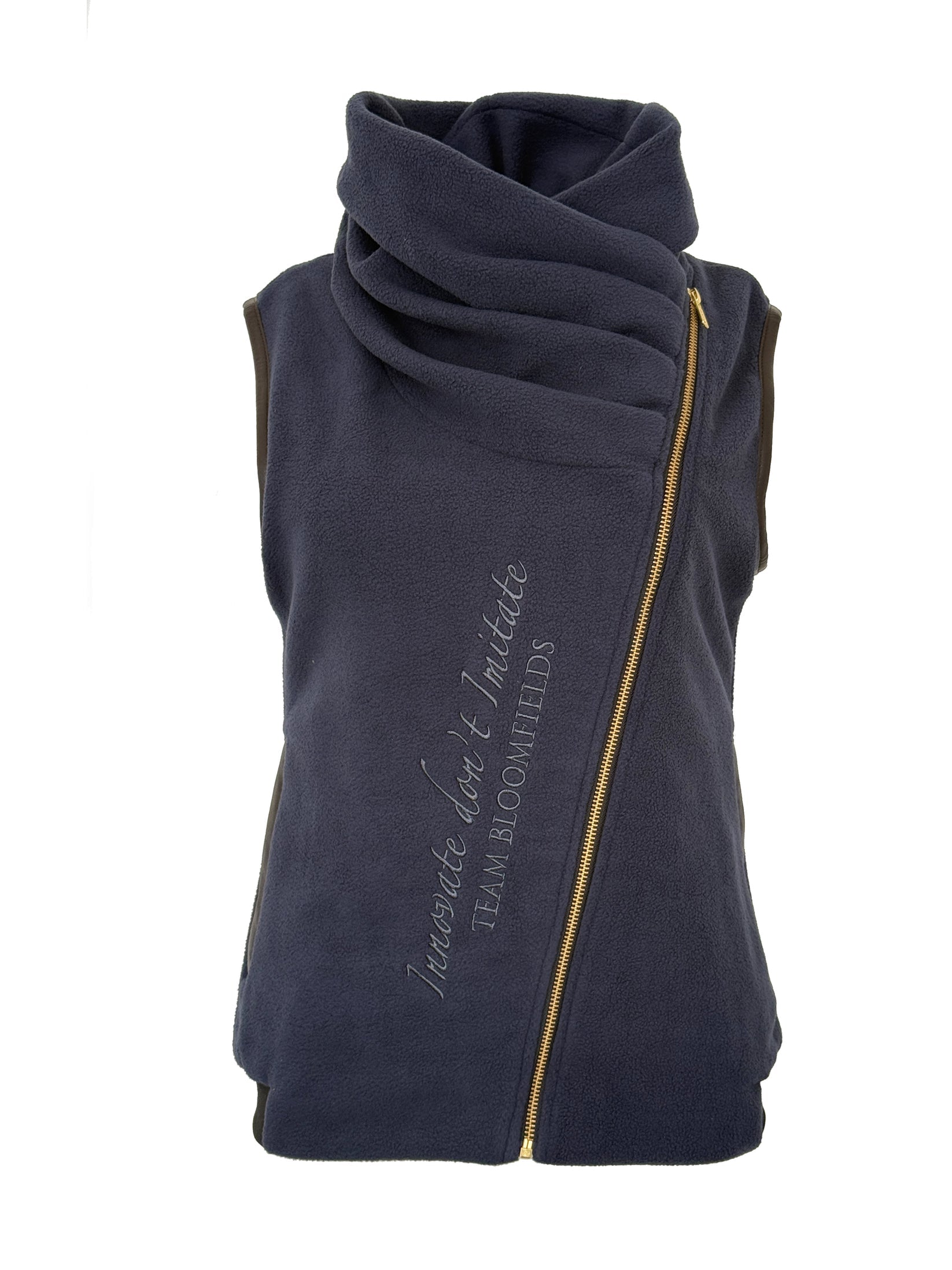 Stone country fleece gilet, with our best selling Sabrina ruffled high neck line
