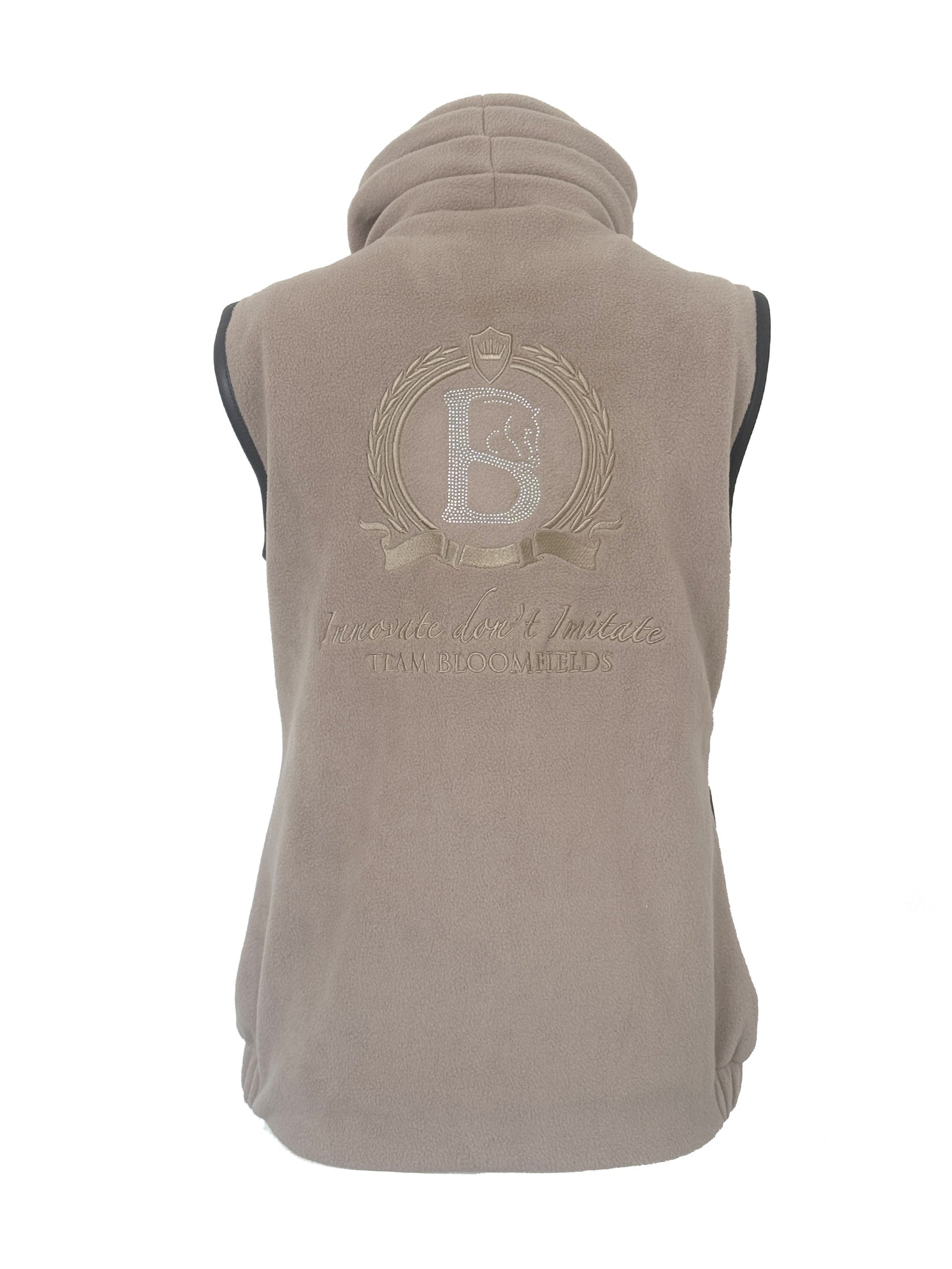 Stone country fleece gilet, with our best selling Sabrina ruffled high neck line